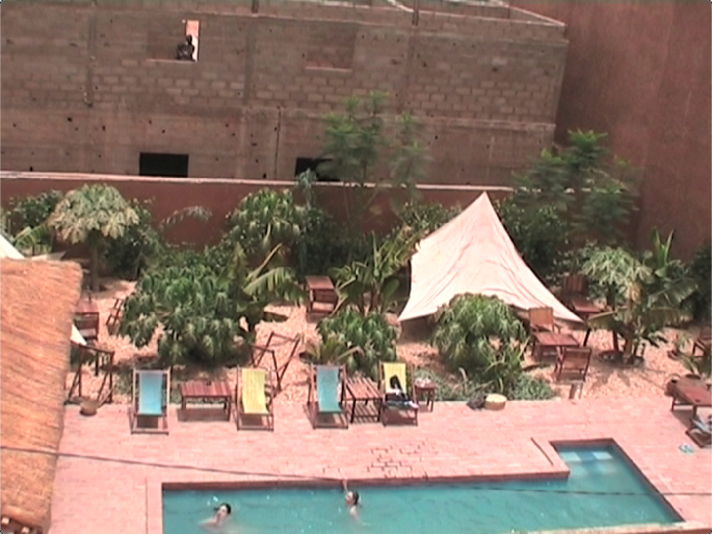At a hotel pool in Mali, white women bathe behind high walls that fail to shield them from the gaze of black construction workers. The women themselves cannot help but see the men.